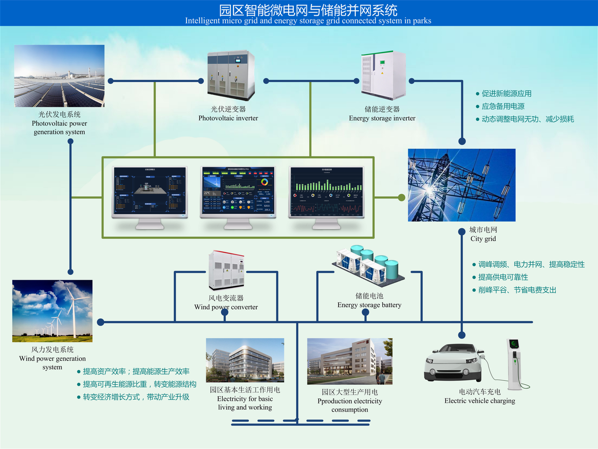 工商業(yè)級智慧光儲系統適用于大中小各類(lèi)規模的工業(yè)園區、政府大樓、寫(xiě)字樓、學(xué)校、商場(chǎng)、收費站、交通樞紐等。該光儲系統充分利用園區閑置屋頂進(jìn)行光伏發(fā)電,以光伏和儲能供應園區日夜用電,利用峰谷電價(jià)差來(lái)節省園區峰值電費,有效管控電費賬單;滿(mǎn)足自用同時(shí),園區還可申請并網(wǎng)進(jìn)行短期電力交易,實(shí)現園區能源系統經(jīng)濟效益最大化;還可作為地方微電網(wǎng)示范項目,帶動(dòng)光伏綠電的推廣,以帶動(dòng)地方能源體系全面綠色轉型!